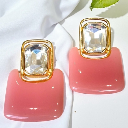 • ✨ Brinco Oval Dourado com Pedra Colorida ✨