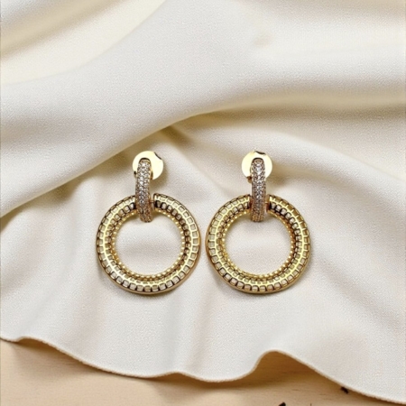 • 🌟 Brinco Dourado Duplo com Efeito Martelado 🌟