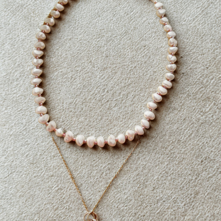 • 🤍 Duo Colar Choker de Pérolas & Corrente com Coração Banhado
