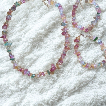 • Kit Choker & Pulseiras Cascalho Colorido Natural 🌈✨