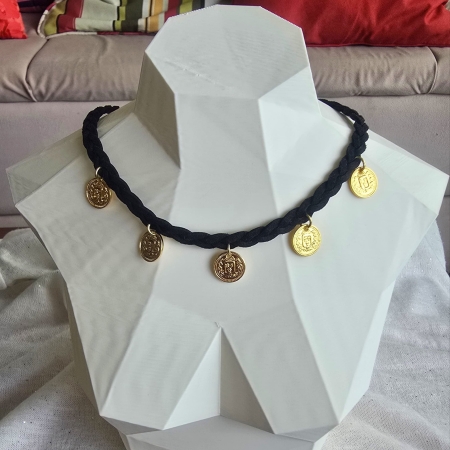 • Conjunto Choker de Courinho & Brincos Argola com Pingentes de Howlita