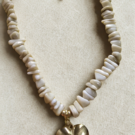 • Colar curto cascalhos em resina pingente coração