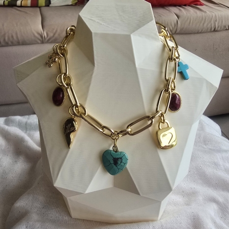 • Colar de Corrente Grossa com Charms Múltiplos
