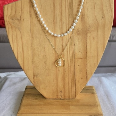 • Colar duo pérolas e corrente dourada