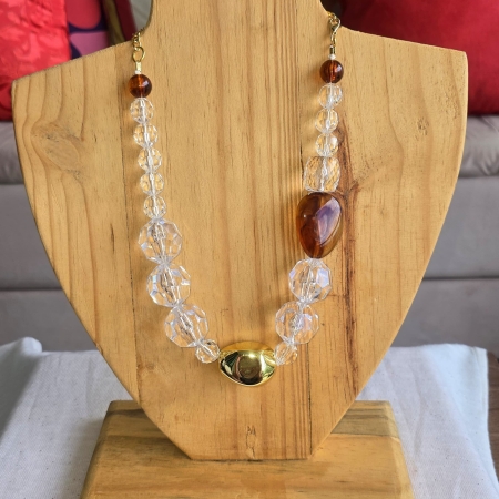 • Colar Elos Dourados com Pingente Marrom