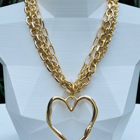 • Colar Max Coração Orgânico com Mix de Correntes Douradas