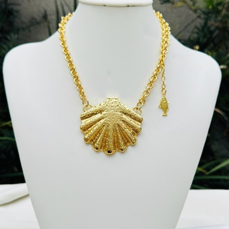 • Colar Dourado com Concha e Peixinho