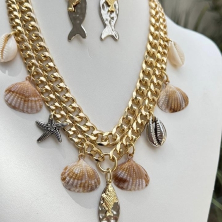• 🐚 Colar Peixe & Conchas Douradas Um toque de brilho e estilo inspirado no mar! ✨