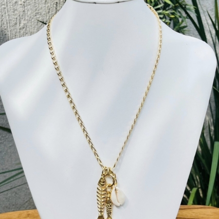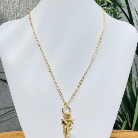 • Colar Corrente Dourado com Pingentes de Conchas e Tartaruga