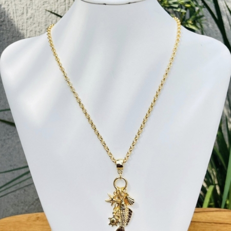• 🐚 Colar Dourado Peixe & Estrela do Mar