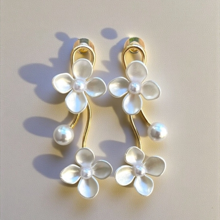 • Brinco flor pétalas texturizadas com miolo em pérolas