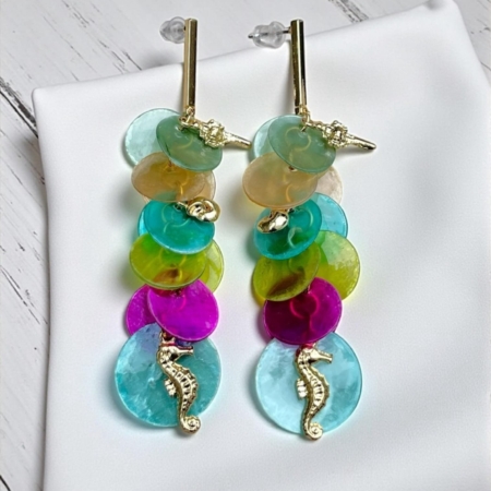 • Brinco Longo com Madrepérolas Coloridas e Pingentes Marítimos
