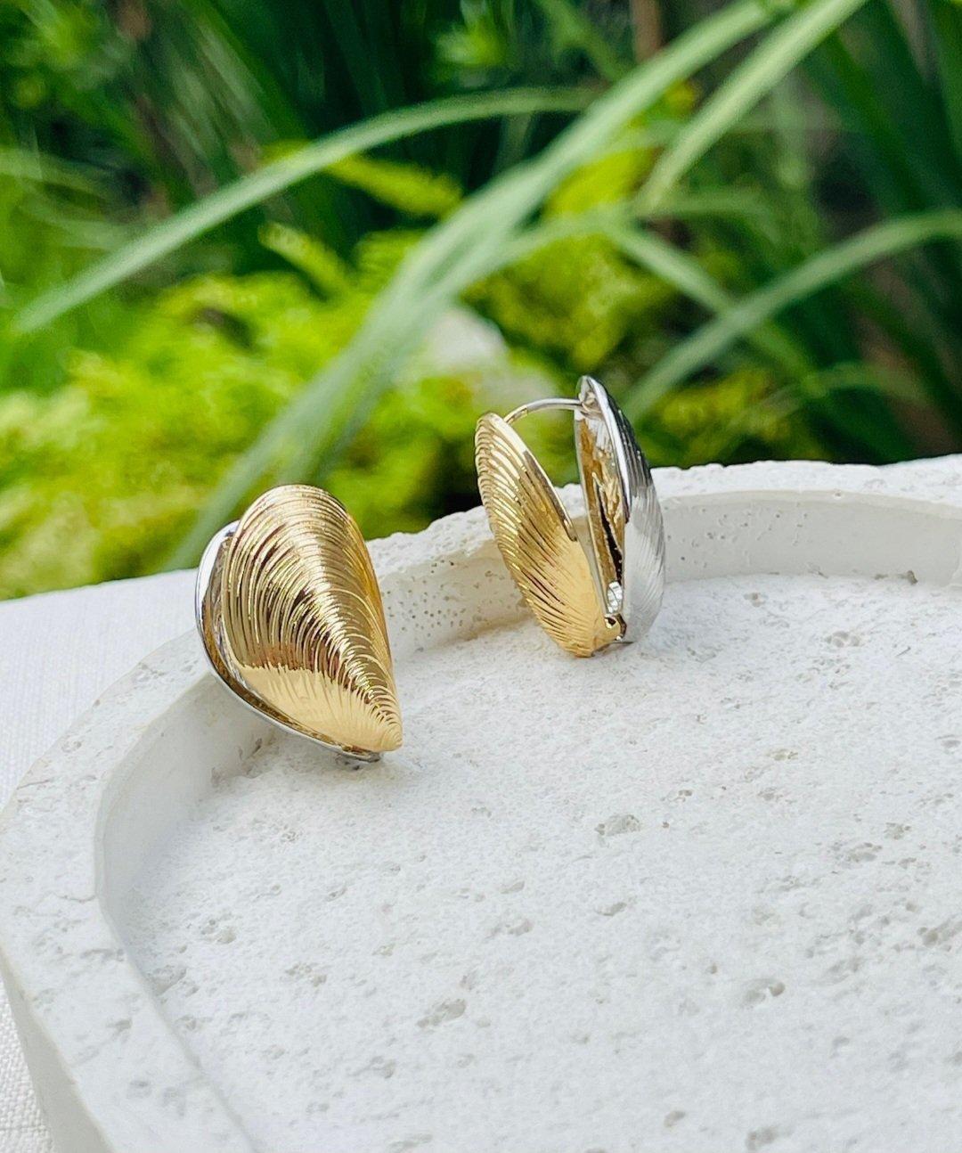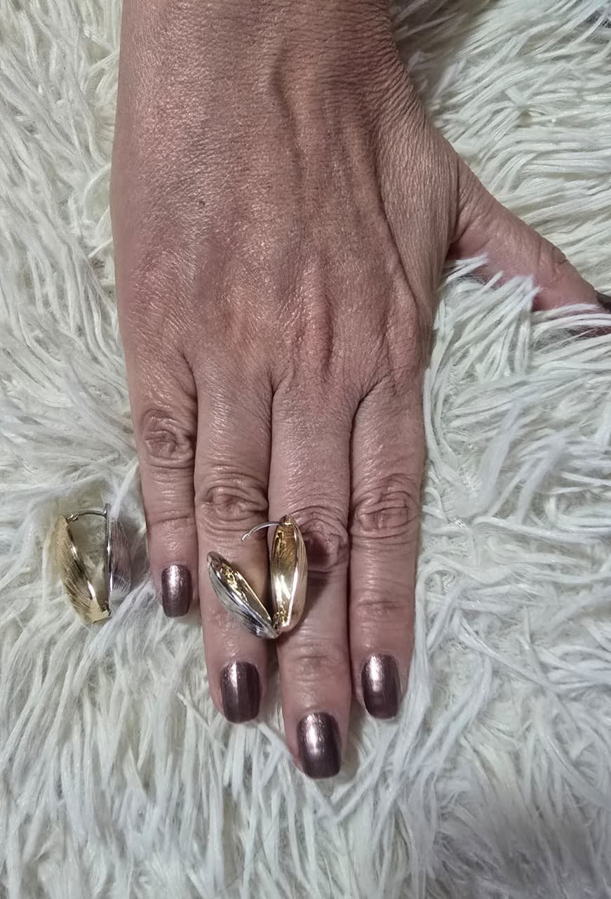 Um charme delicado que faz toda a diferença! Este brinco pequeno, de encaixe com aquele clique seguro, combina o banho dourado de um lado e o prateado do outro, trazendo um toque moderno e versátil para qualquer look. Seu formato de concha alongadinha, com risquinhos sutis, transmite elegância e leveza, perfeito para quem ama detalhes refinados sem perder o conforto. Um brinco que se destaca pelo design simples, mas cheio de personalidade. 💛🤍