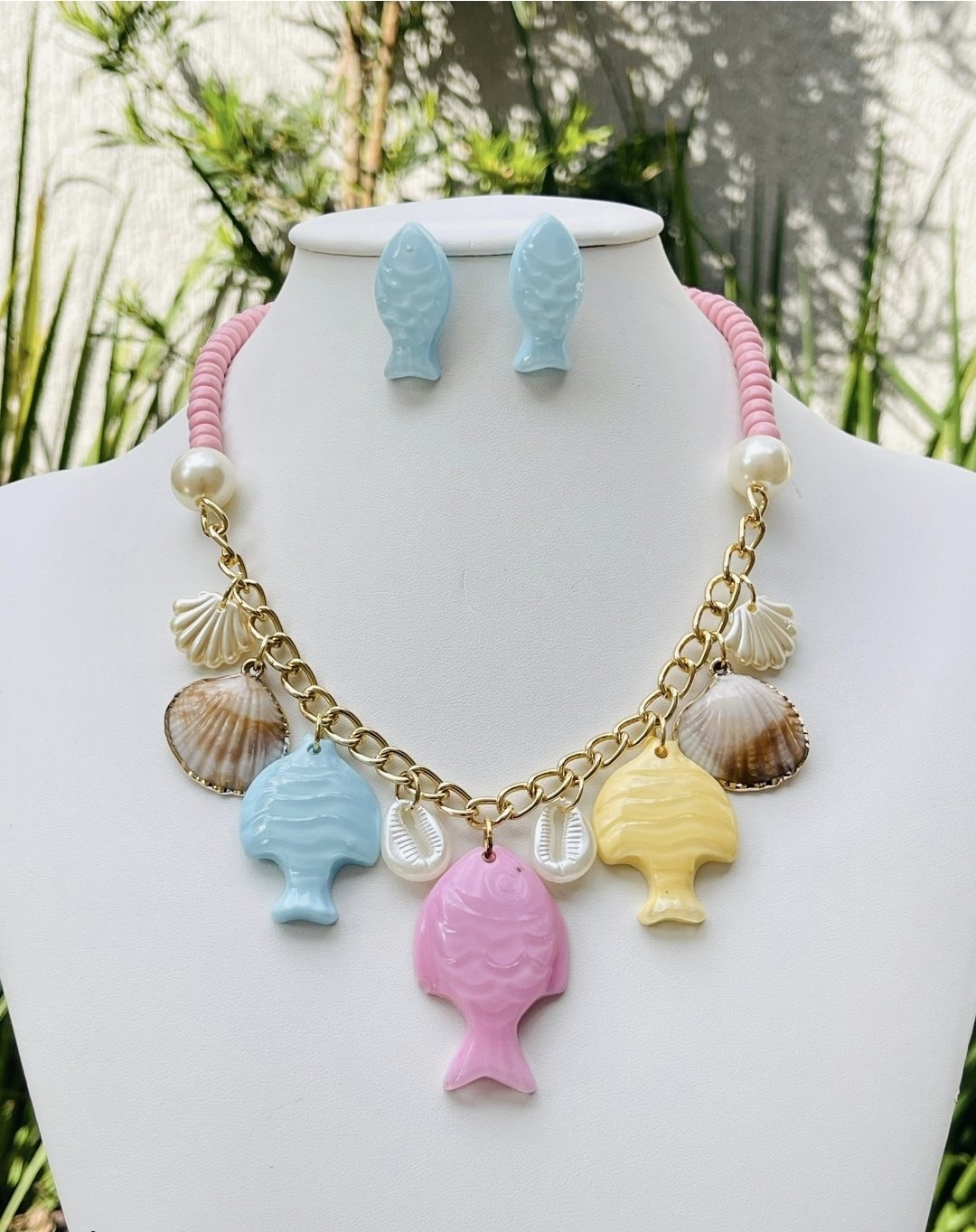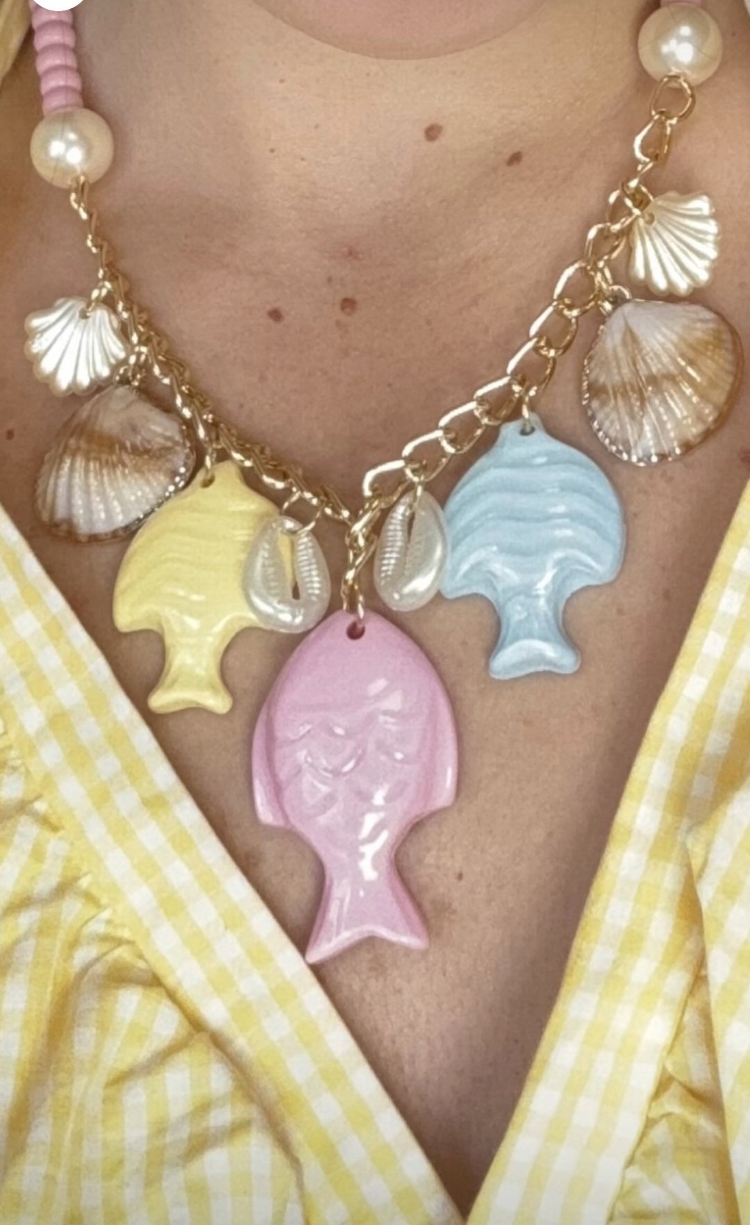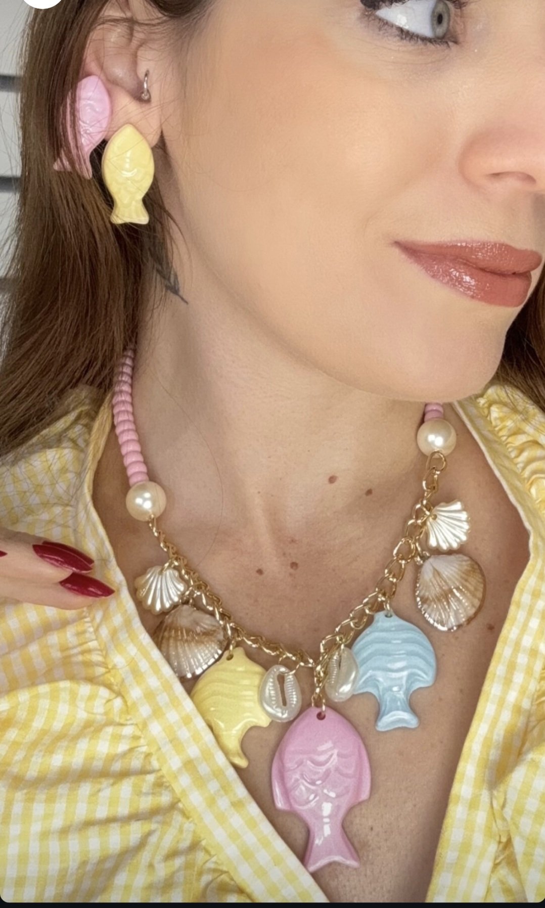 Peixinhos coloridos, conchas e tons suaves que traduzem o charme do litoral em uma versão fashion e divertida.