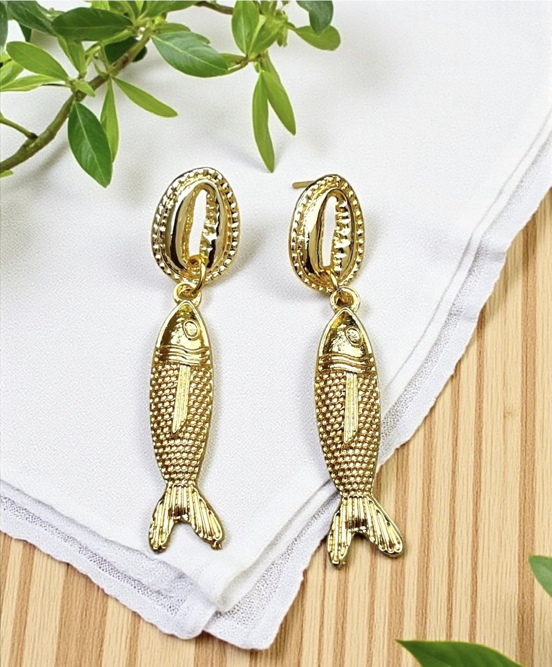 Seu banho de ouro traz o brilho do sol sobre o mar, enquanto o pingente de peixe traduz o espírito livre e sofisticado da estação.