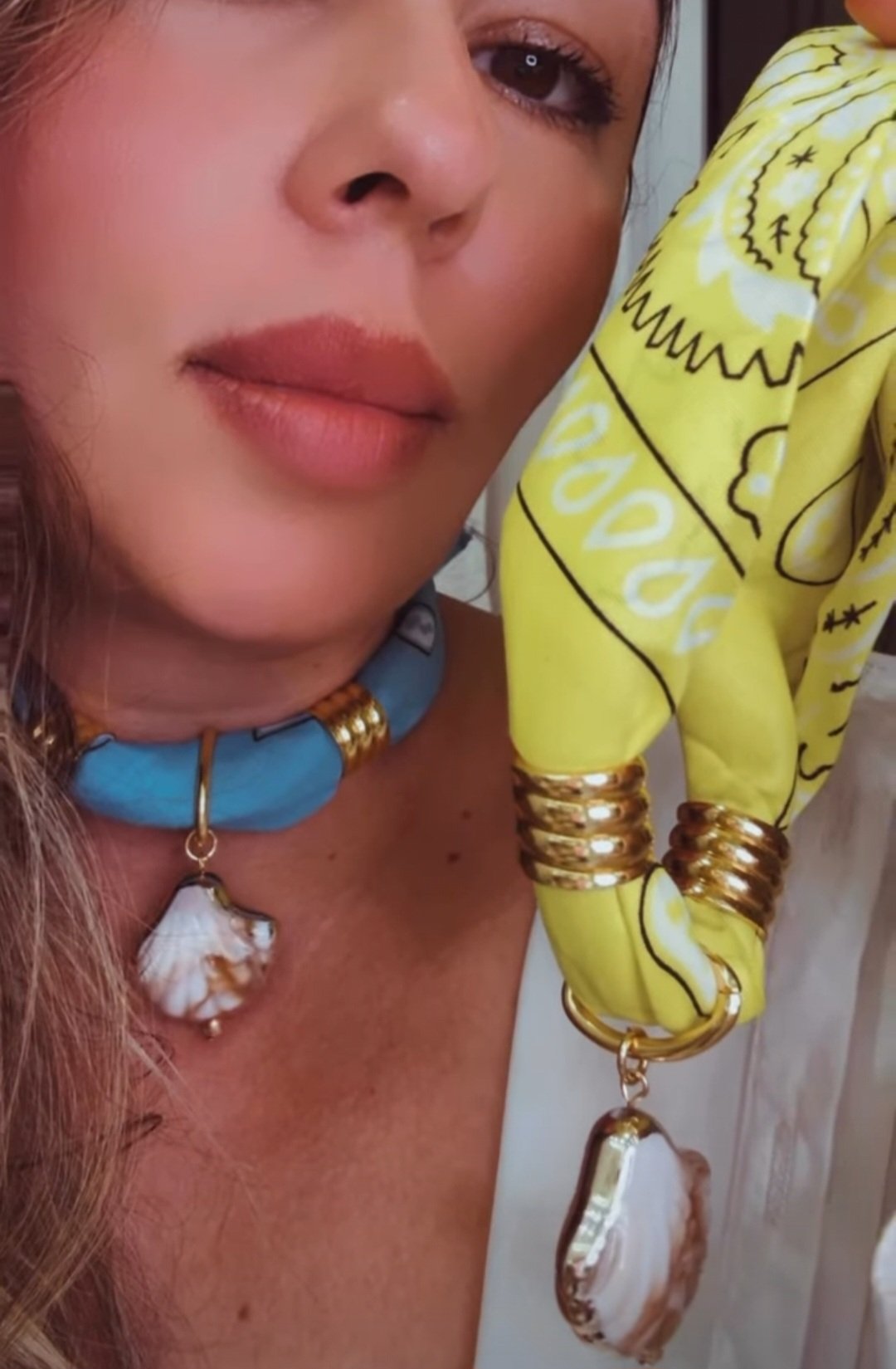 Cada acessório apresenta um pingente de concha em resina, uma peça única que imita a delicadeza das conchas naturais, mas com a leveza e durabilidade perfeitas para o dia a dia. Aconchegadas em uma bandana de tecido suave, elas podem ser usadas de várias maneiras para se adaptar ao seu estilo.