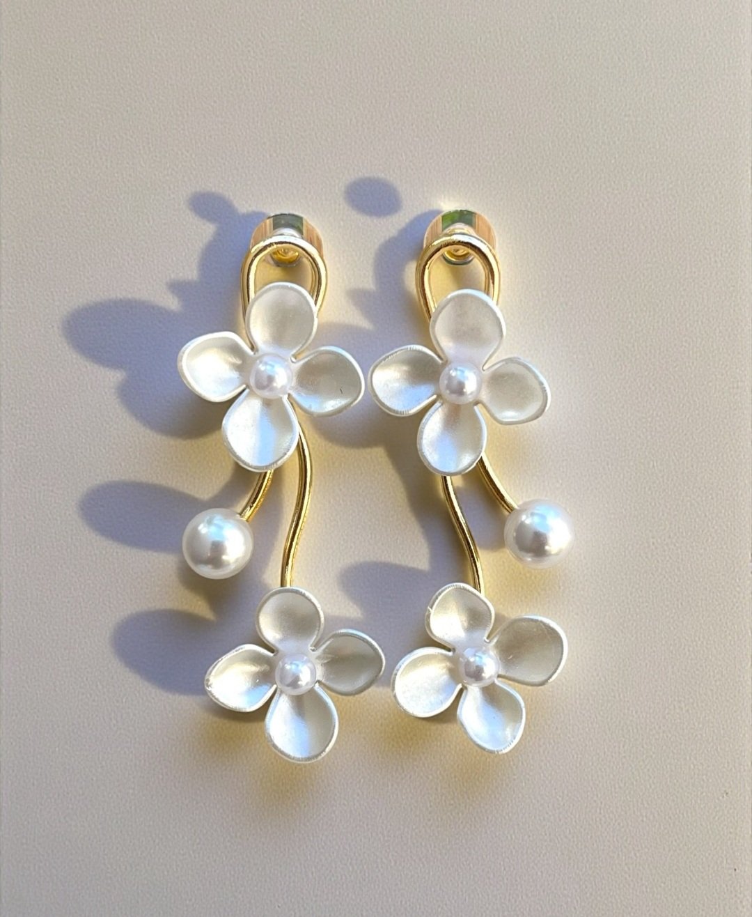 As flores peroladas com acabamento acetinado trazem leveza e feminilidade, enquanto o dourado adiciona um brilho sutil e sofisticado.