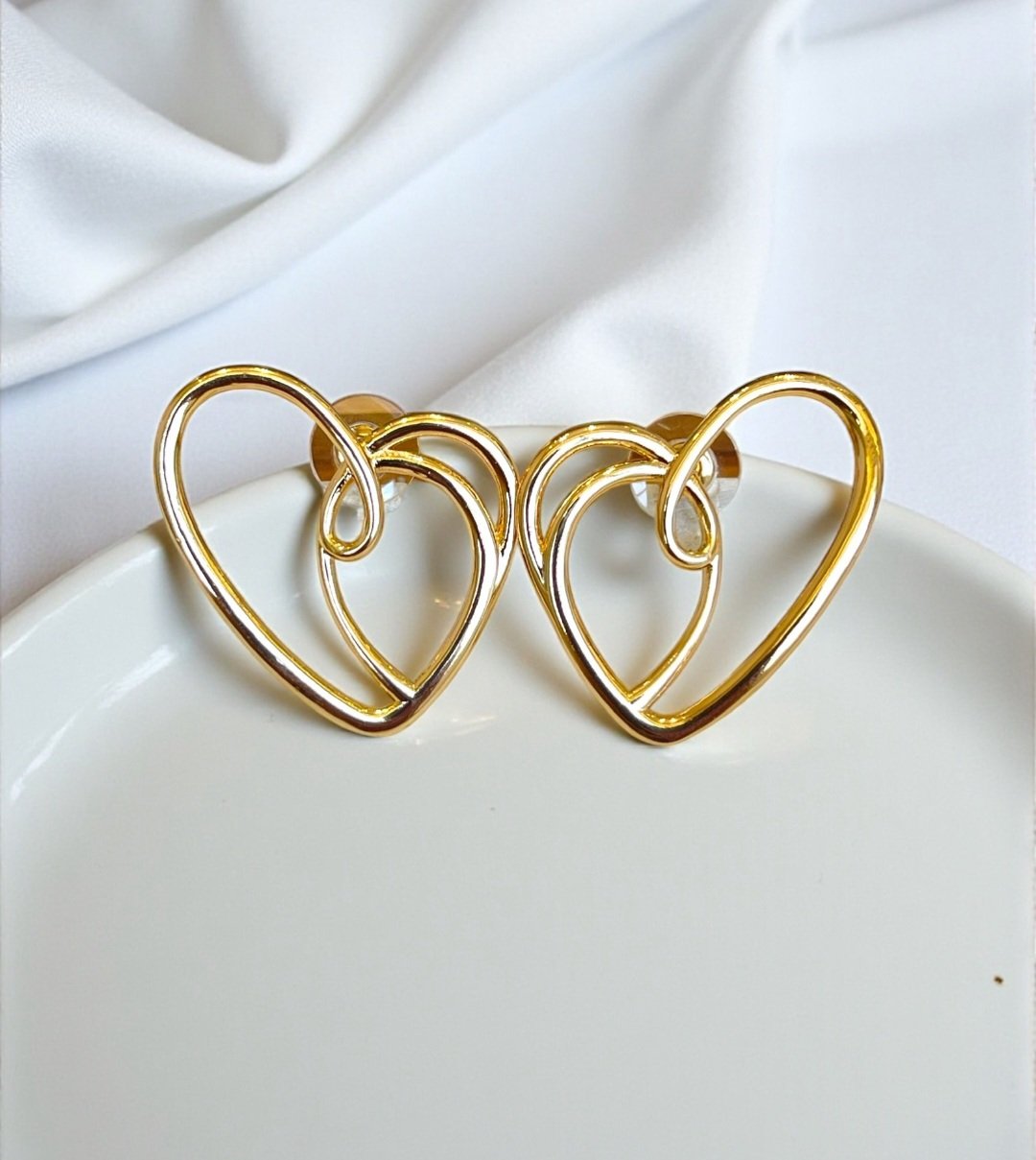 Declare seu amor pela moda com estes encantadores brincos de coração entrelaçado. Uma joia que combina romantismo e design moderno, perfeita para adicionar um toque de afeto e sofisticação a qualquer look.