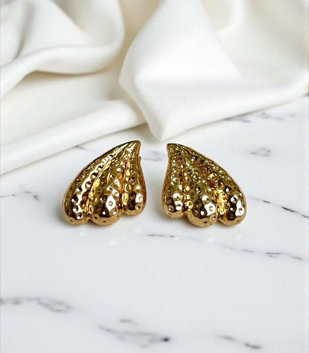 Adicione um toque de arte e modernidade ao seu look com estes brincos dourados de design único. Com uma forma abaulada e compacta, eles se destacam pela sua textura irregular e impactante, que remete a bolhas ou escamas. O acabamento polido e brilhante do metal dourado realça cada detalhe, criando um efeito visual que é ao mesmo tempo orgânico e sofisticado.