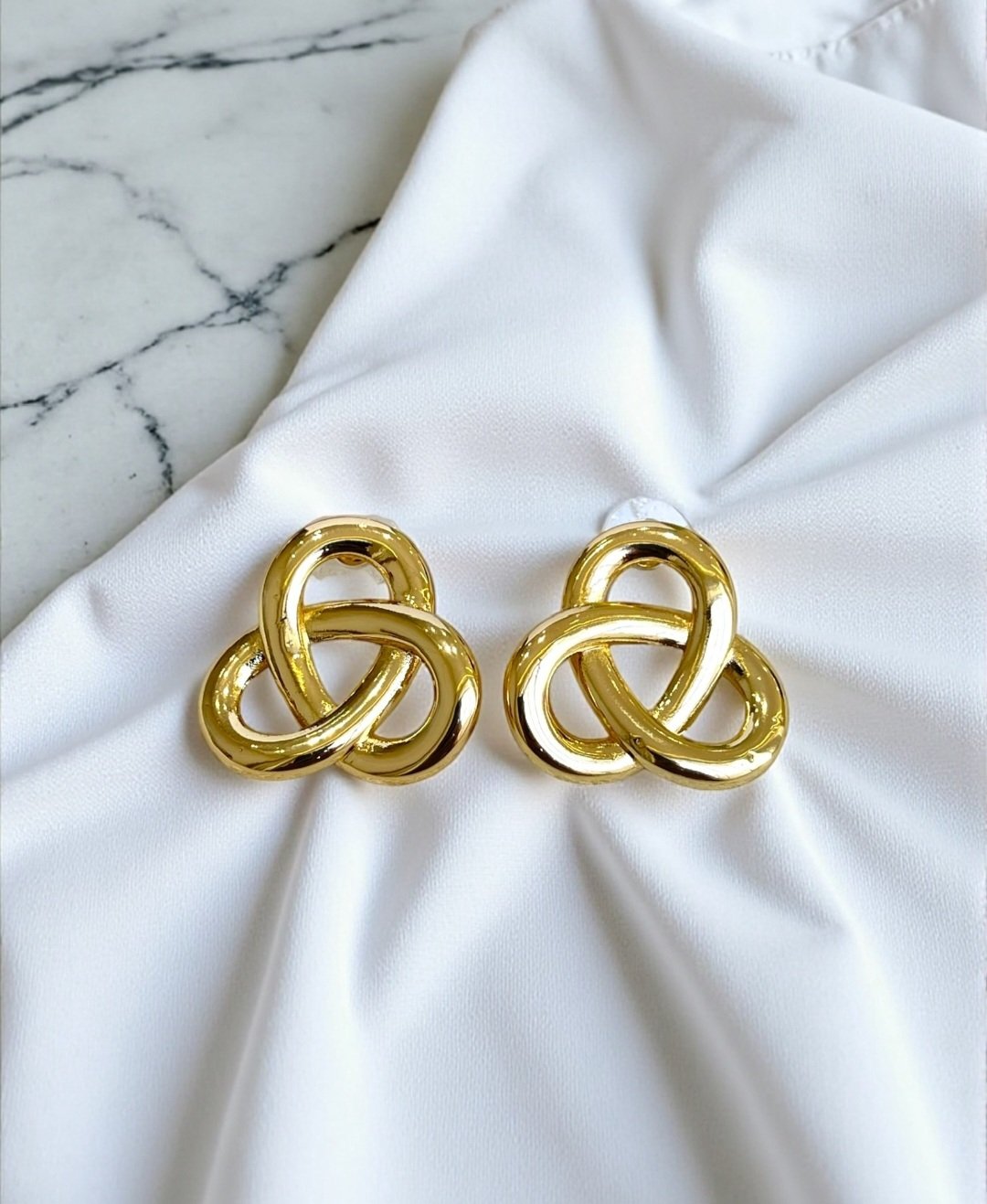 O acabamento em banho dourado polido confere um brilho luxuoso e um visual contemporâneo que se adapta a qualquer ocasião. O formato em nó entrelaçado é ao mesmo tempo clássico e moderno, garantindo um visual elegante e atemporal.