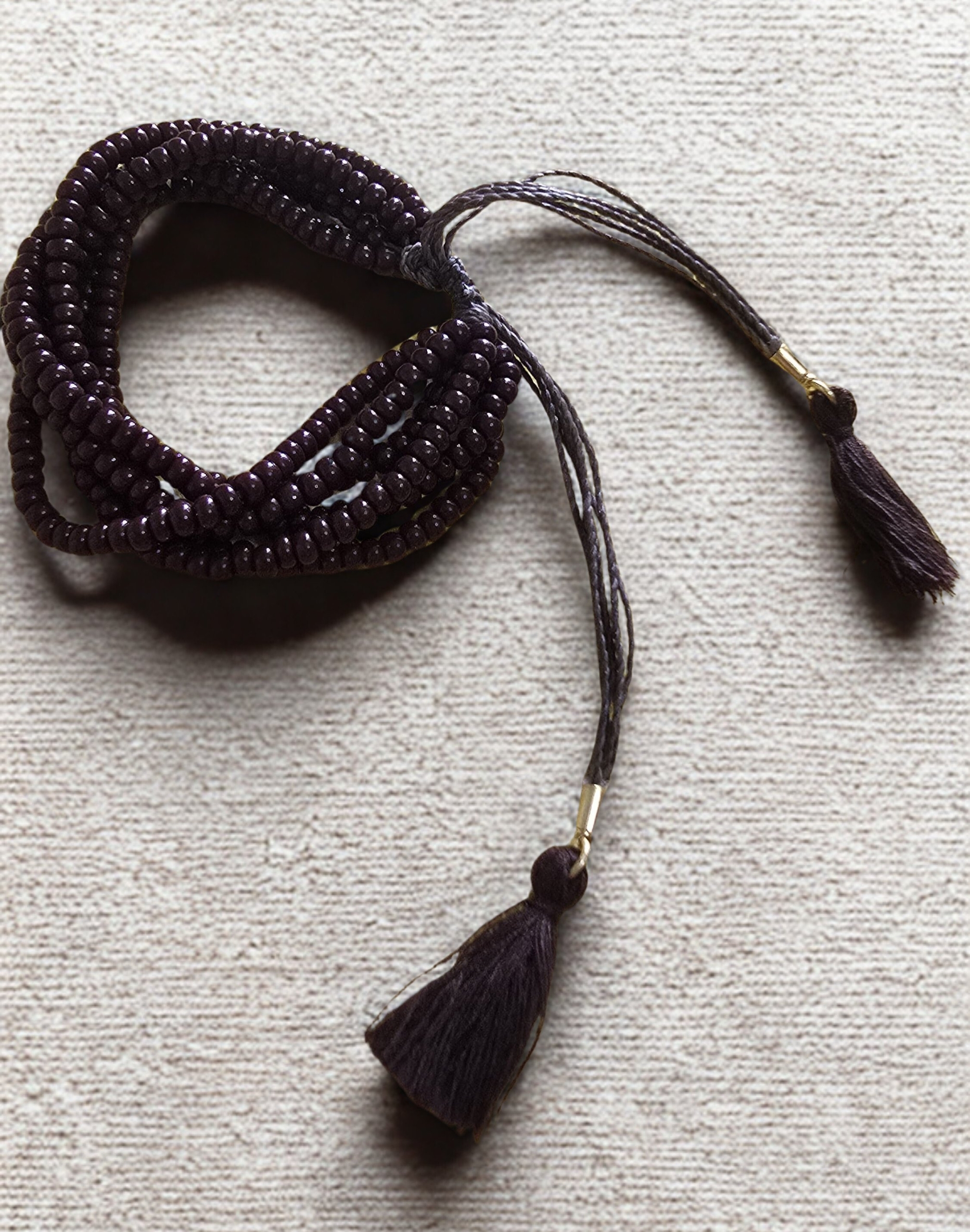 Miçangas em tom marrom terroso que destacam seu estilo autêntico.