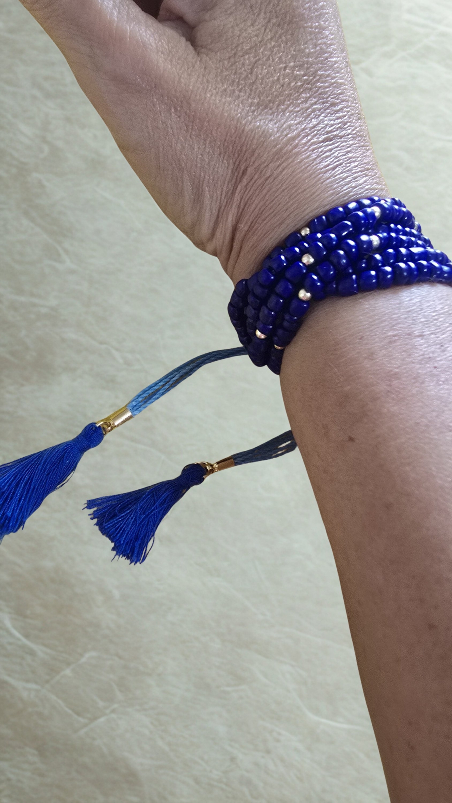 1️⃣ Pulseira Azul com Detalhes Dourados